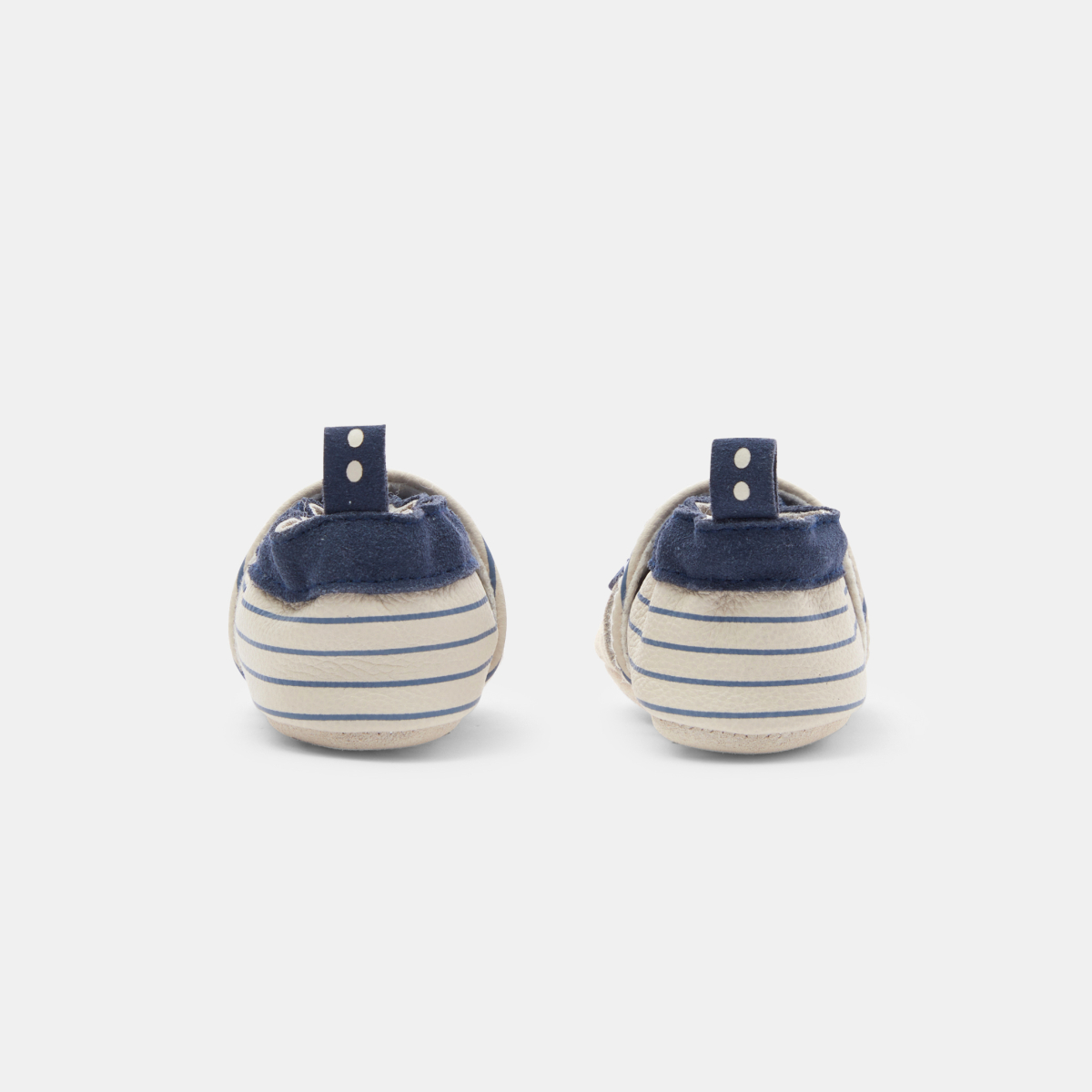 Descriptive These leather booties are essential for protecting your little ones' feet. Easy to slip on with elasticated sides they are comfortable and all-leather so they can be worn barefoot. Flexible sole for use from birth.