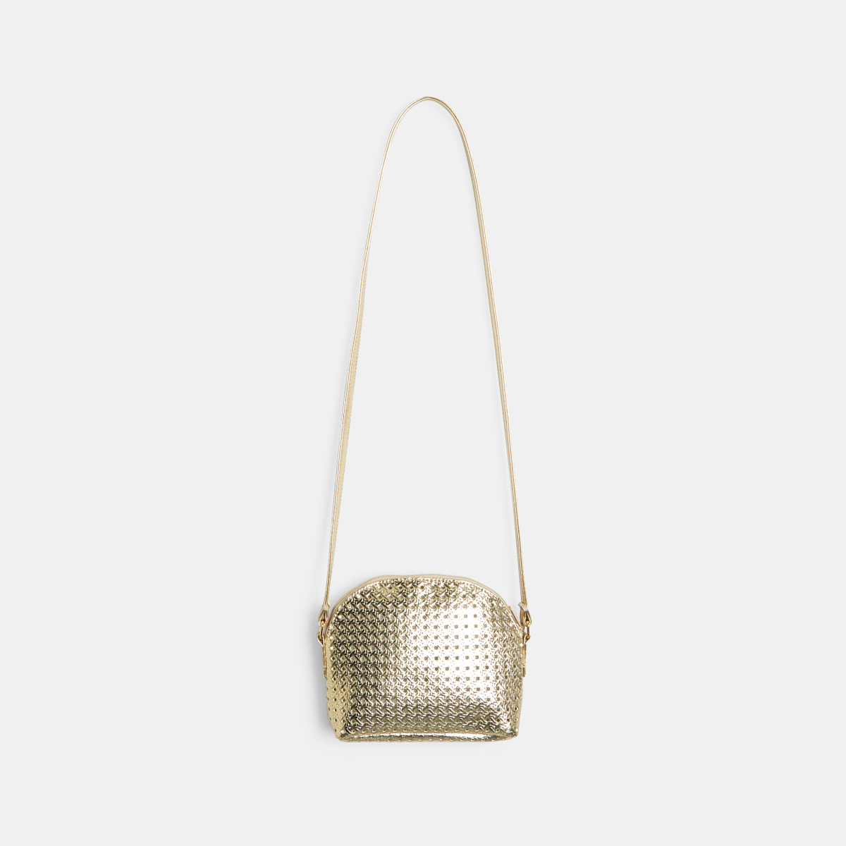 Worn as a shoulder bag or slung over the shoulder this golden bag makes a great addition to any look! It can be worn as much with a formal dress as with jeans and a sweatshirt. Zip fastening. One size. A lovely gift idea. Children's accessory.