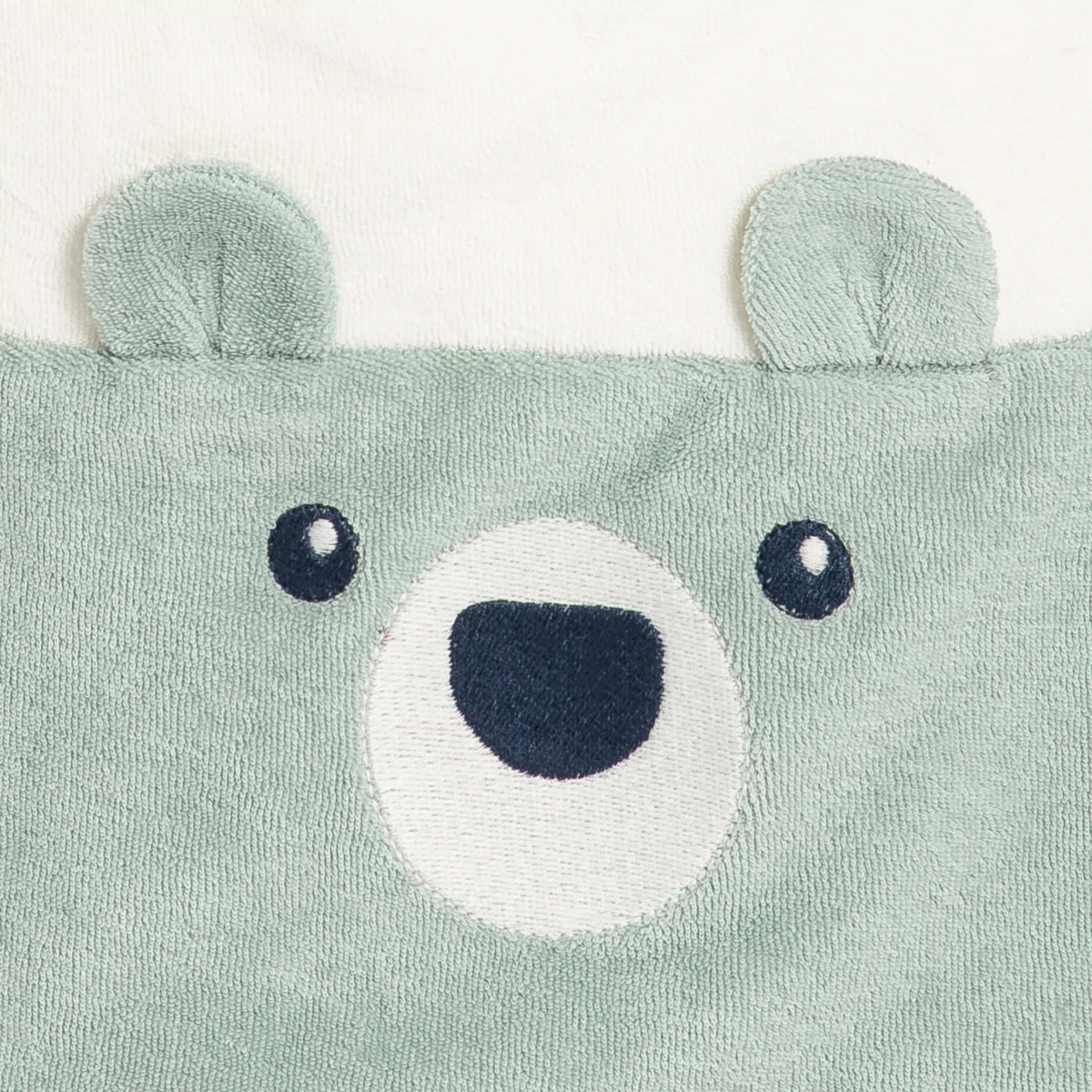We love this cute little bear watching over your little one's mealtimes. Clothes can stay stain-free with this large bib in soft bouclé cotton. Velcro fastening on the side. 3D ears to make mealtimes fun. Pack of 2 bibs.