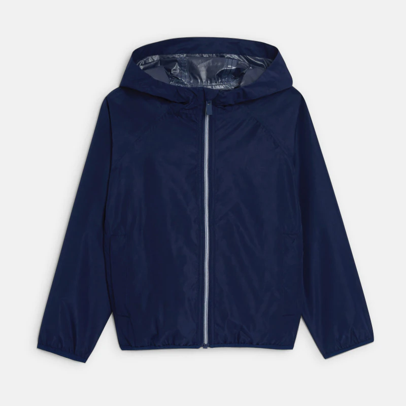 Bring on the rain! Bring on the wind! This hooded windbreaker will keep boys well-protected from the elements. Waterproof fabric, welded seams inside. Jacket cut, elasticated hem. Stand-up collar. Zip fastening. 2 pockets. Long sleeves, elasticated cuffs.