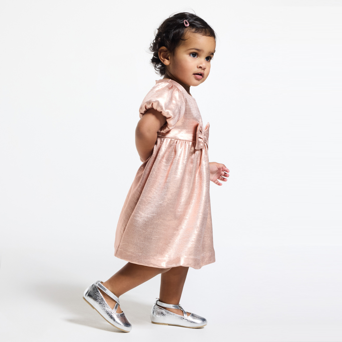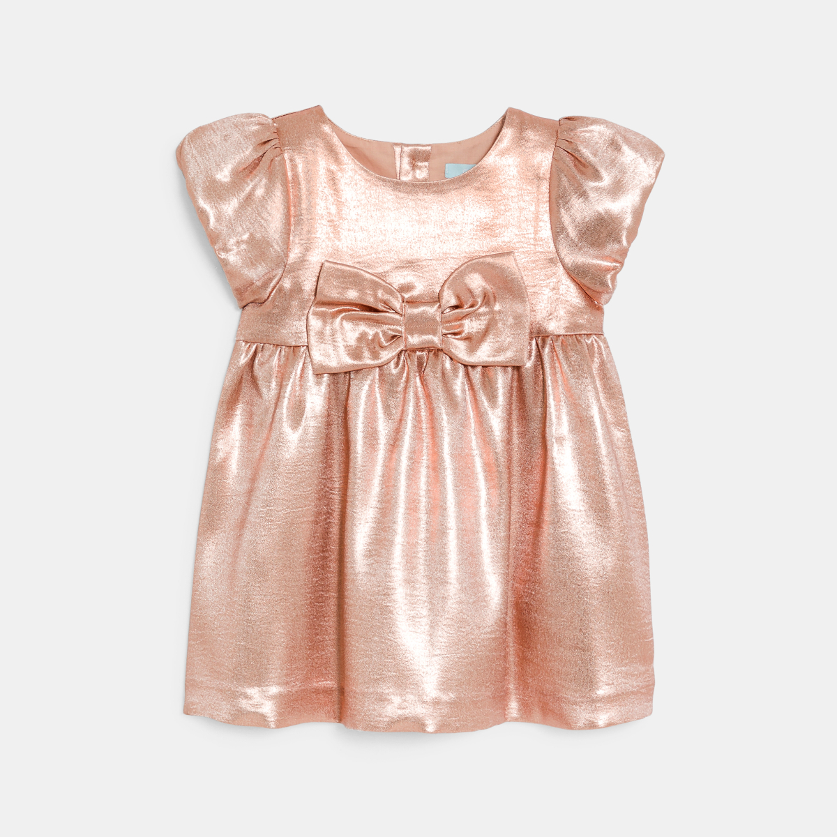 Girls will be the queen of the party in this eye-catching dress! A sparkly fabric and an elegant cut for this short-sleeved dress. A fancy bow accentuates the waist. Back button fastening.