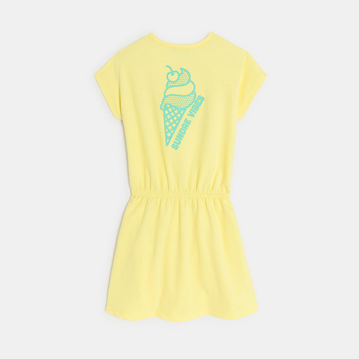 Town dress or beach dress? One thing's for sure: this dress heralds a great spring-summer season with its large Italian ice cream cone printed on the back! Soft plain jersey. Crew neck. Short sleeves. Elasticated waist with drawstring tie. Top-stitched finish.