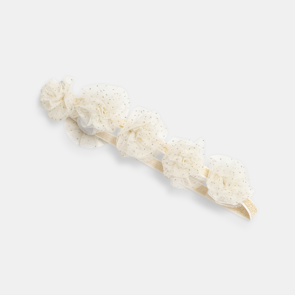 This floral tulle headband will add a touch of sparkle to finish off a look! Thanks to its elasticated base it will stay firmly in place.