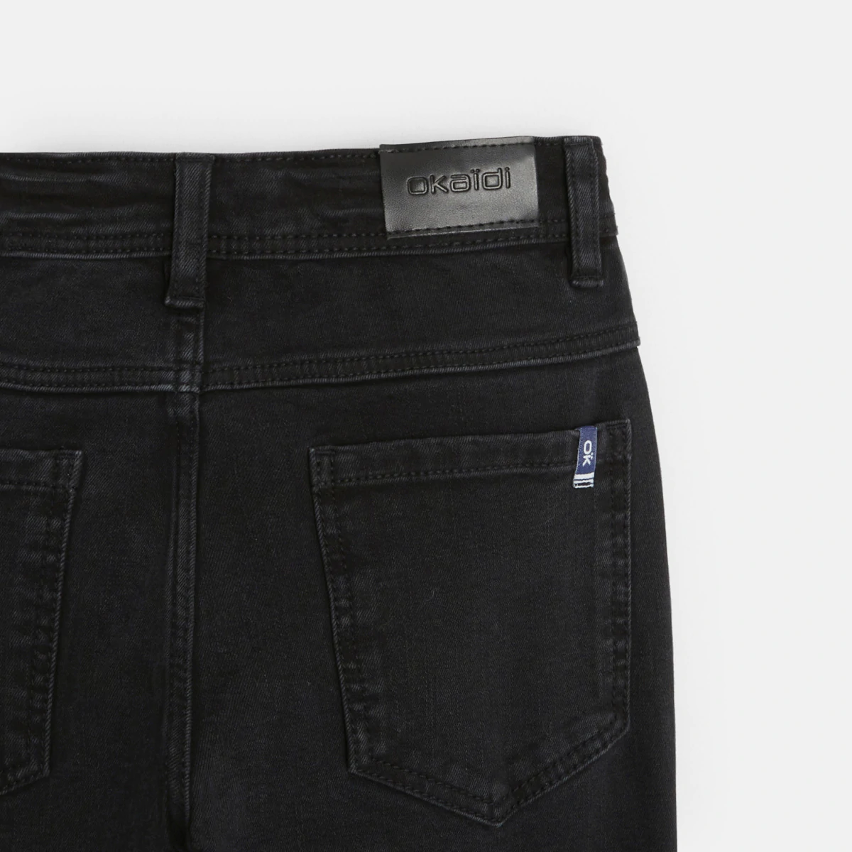 Descriptive In the Jeans Collection these black jeans with a faded effect in some places are trendy and indispensable. Good news: they are perfect in every way: bi-stretch jeans with a close fit belt loops an opening with a tack button and zipper 5 pockets and an adjustable waistband for comfort...