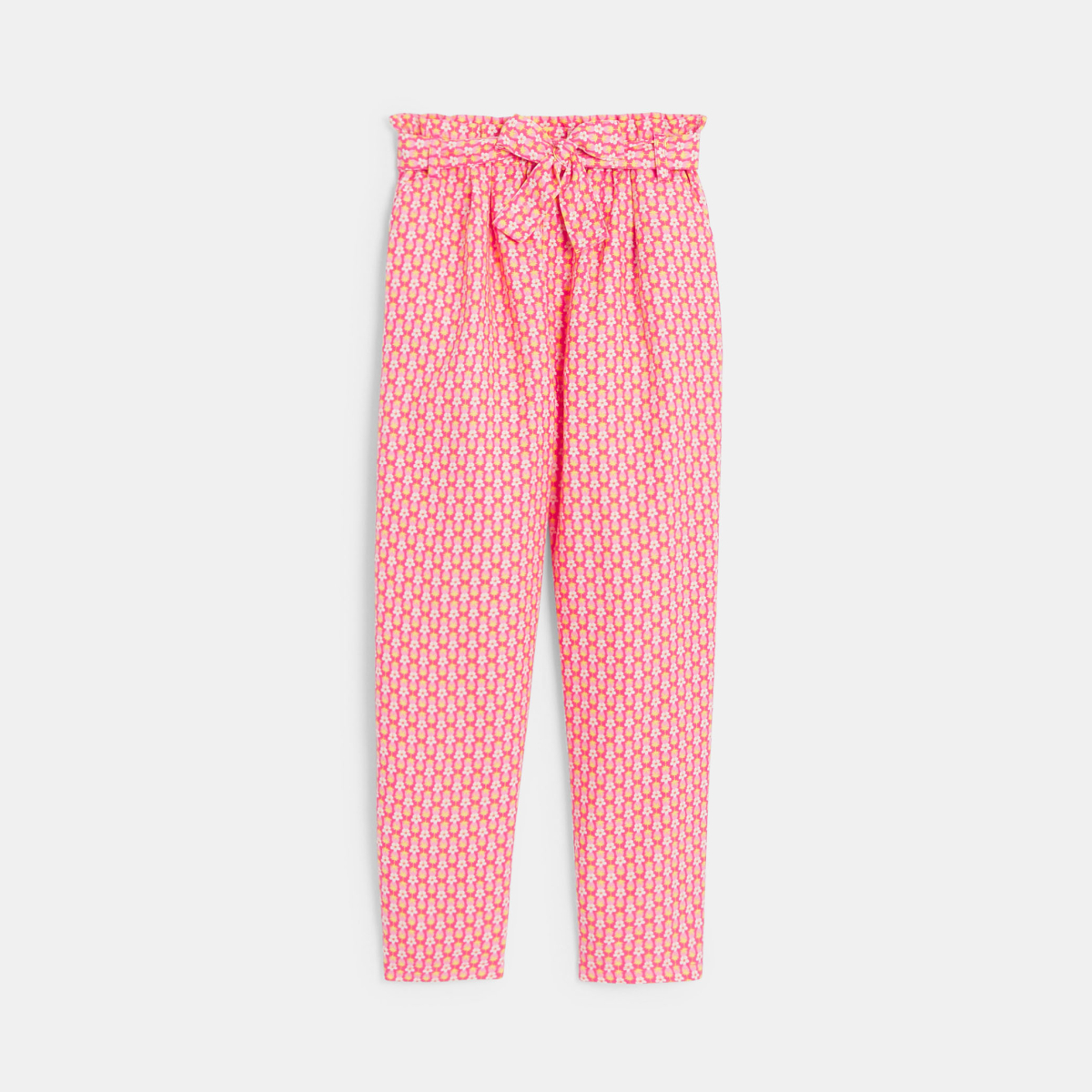 Descriptive Soft flowing and super-comfortable: girls love wearing these printed trousers! Elasticated flat waistband for easy dressing. Belt loops. Tie belt (removable). 2 slant pockets. Piqué finish.