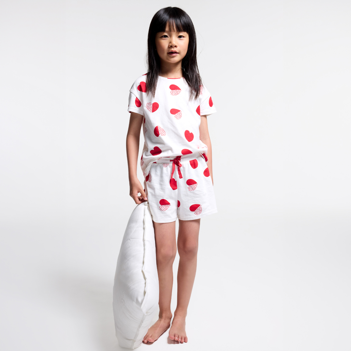 Girls' white heart print shorty pyjamas