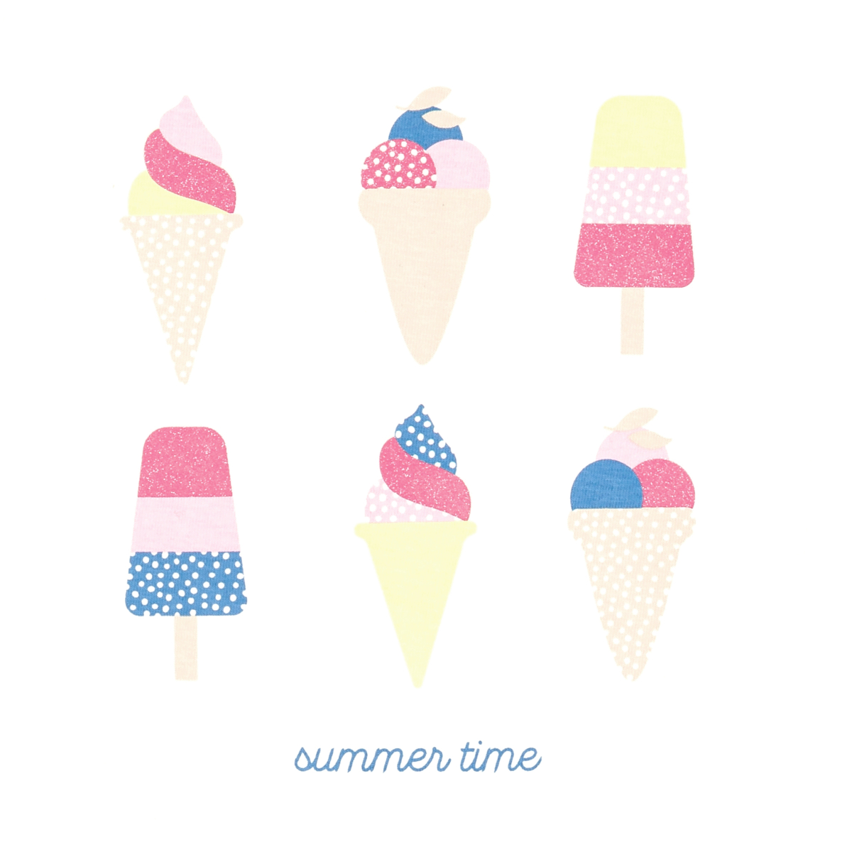 Descriptive The ice-cream man is standing in for the sandman with these summer pyjamas! These pyjamas comprise two coordinating items: a short-sleeve T-shirt with a motif on the front (straight cut, crew neck, plain back) and printed shorts (elasticated waist and ruffled hemline).