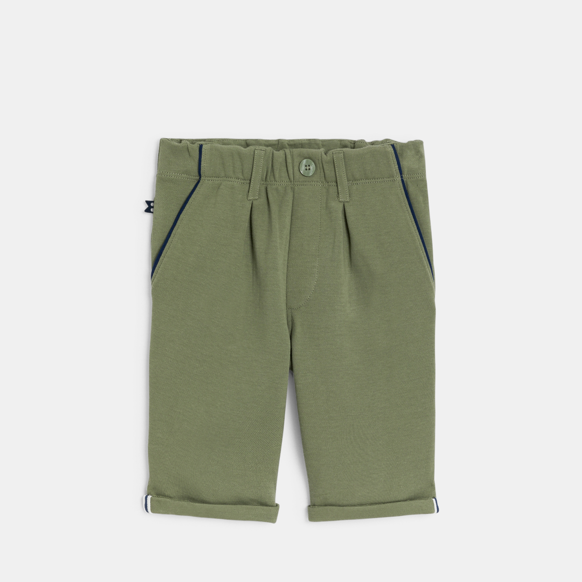 Pique knit is sportswear chic! This pair of Bermuda shorts is a great example, ideal with a polo shirt in sunny weather or a shirt for a different look. Adjustable elasticated waist, drawstring to tie. 2 pockets. Turn-ups. Tone-on-tone stitching.
