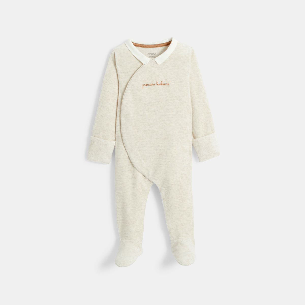 Baby boy's beige ribbed velours sleepsuit