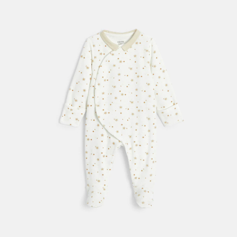 This sleepsuit will keep your little one warm and their head in the stars. Soft comfortable velvet sleepsuit with front press stud fastening for easy dressing with baby on their back.