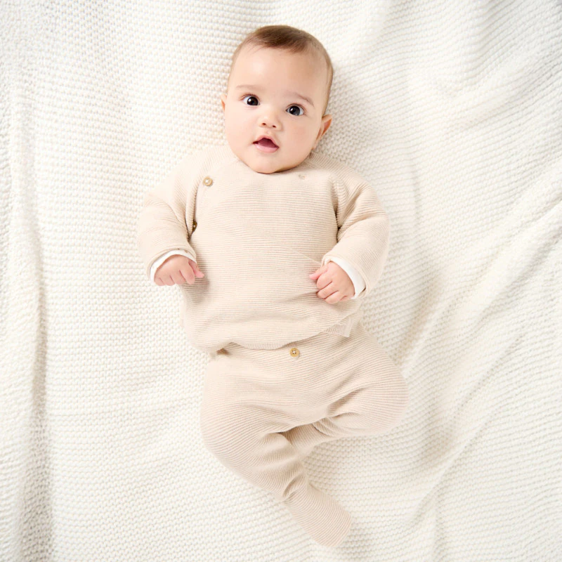 A must-have for dressing baby from newborn this crossover cardigan will wrap them up in comfort. Its soft supple Ottoman-style rib knit adds a touch of originality. Side button fastening for easy dressing boys on their backs.
