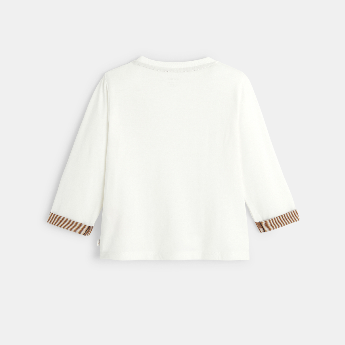An elephant on the heart for the tender side. Striped cuffs for a sportswear touch. This long-sleeved tee-shirt resembles the boys that wear it! A buttoned round neckline for easy dressing.