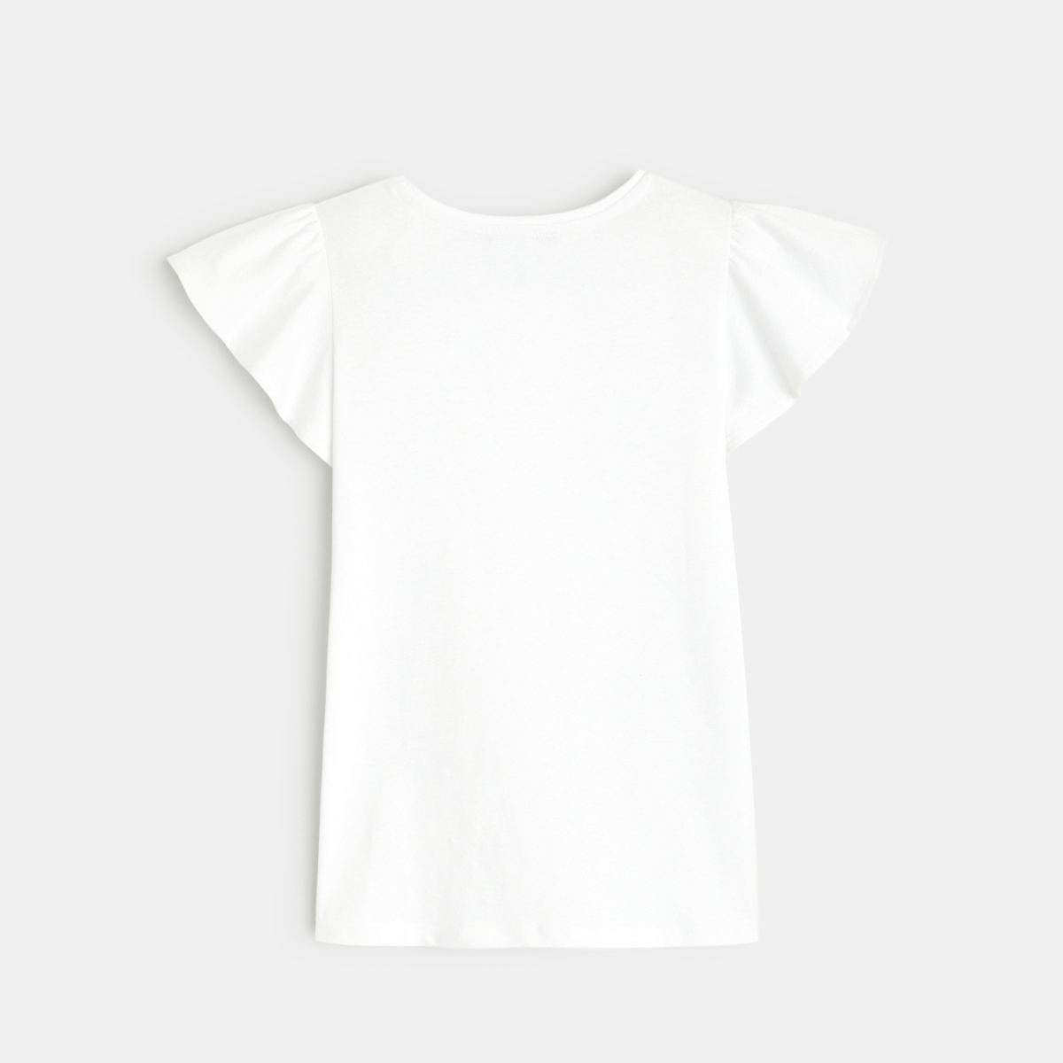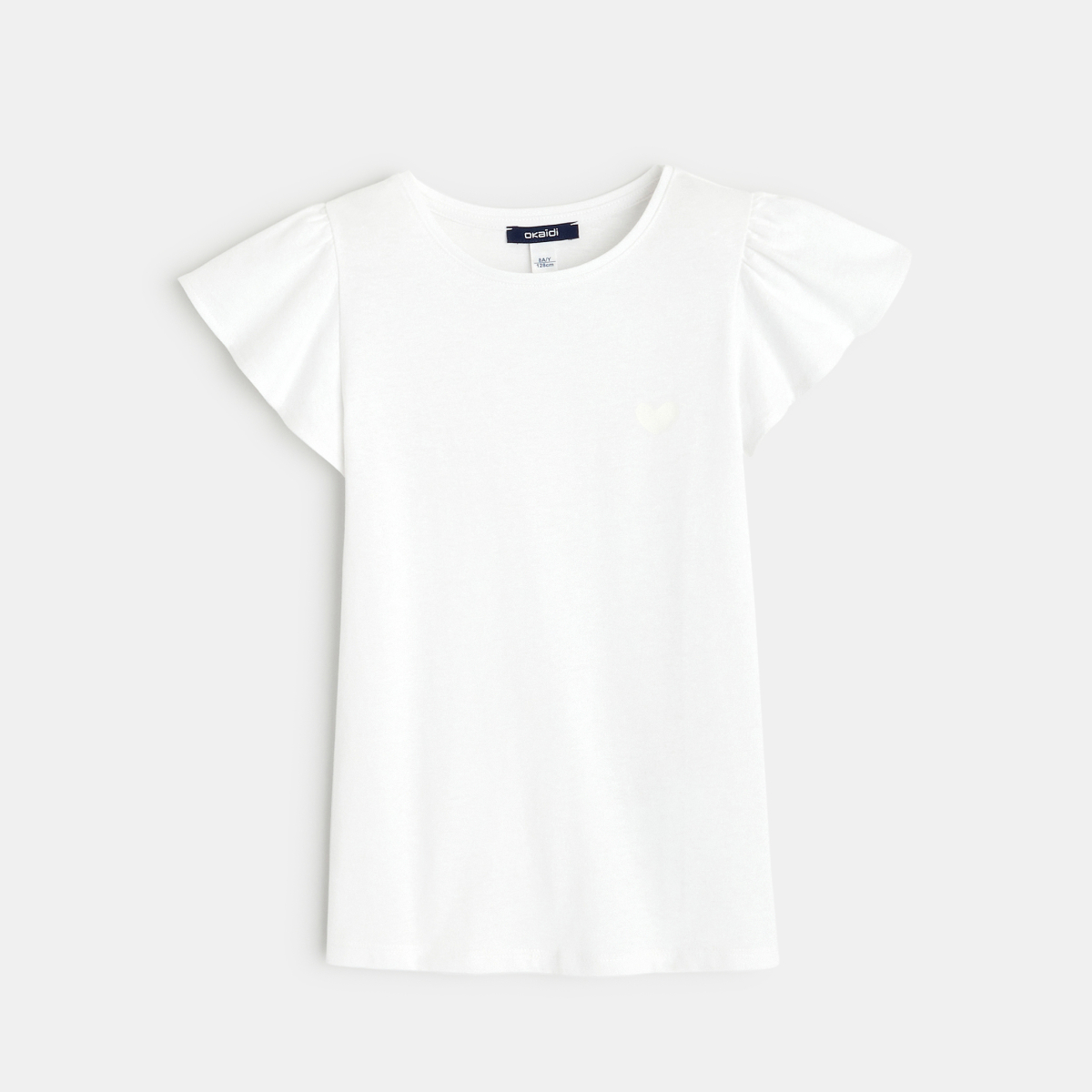 To love immediately. Available in several colours. This soft jersey T-shirt appeals to girls for the originality of its short ruffled sleeves: it brings lightness to the look. Straight cut. Round neck. Straight hem.