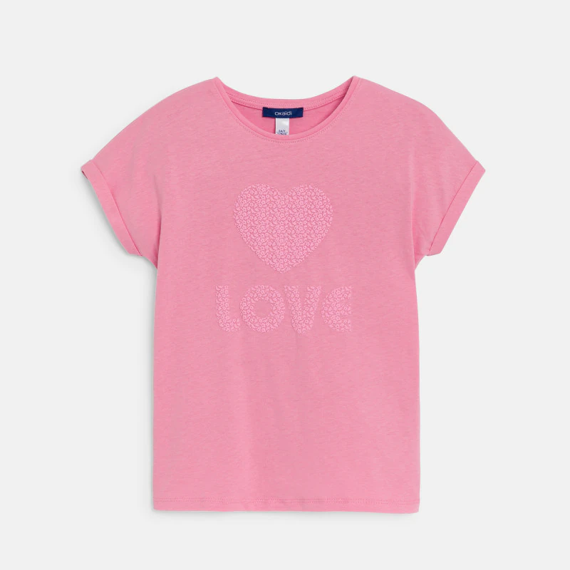 This short-sleeved T-shirt is all about love, with its LOVE message and big heart printed in puff tone-on-tone ink. Girls will fall in love at first sight! Soft jersey. Straight cut. Crew neck. Short sleeves with piqué cuffs. Straight hemline.