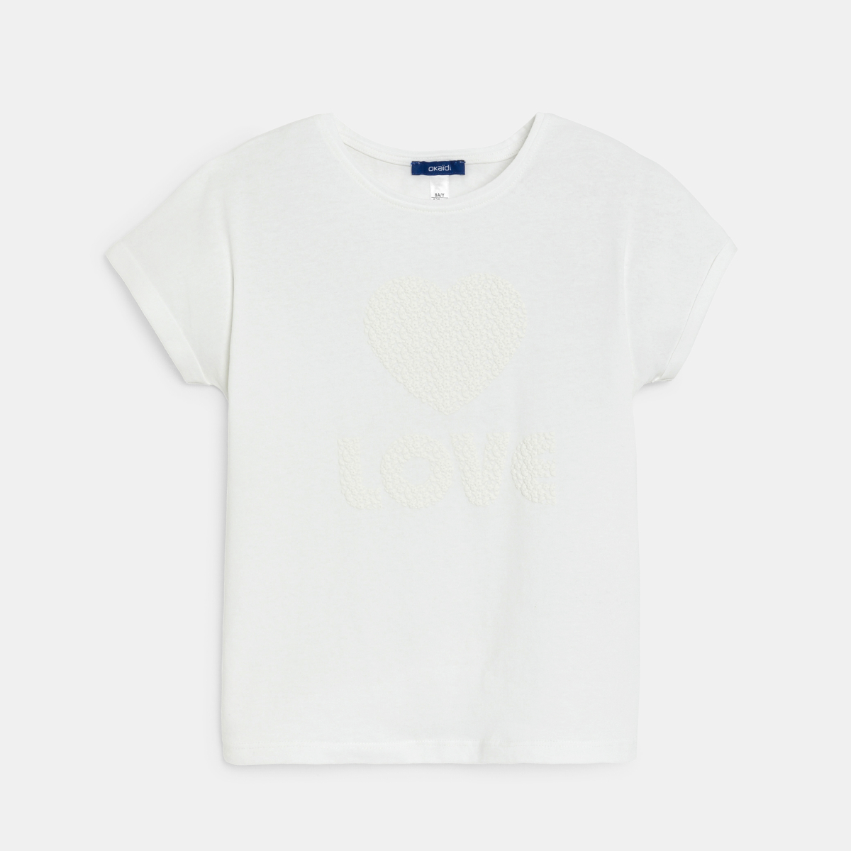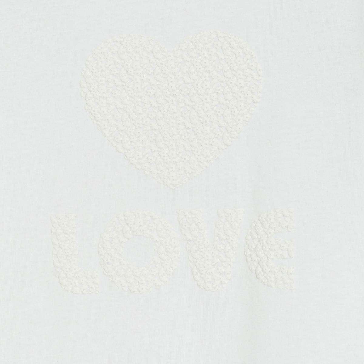 This short-sleeved T-shirt is all about love, with its LOVE message and big heart printed in puff tone-on-tone ink. Girls will fall in love at first sight! Soft jersey. Straight cut. Crew neck. Short sleeves with piqué cuffs. Straight hemline.