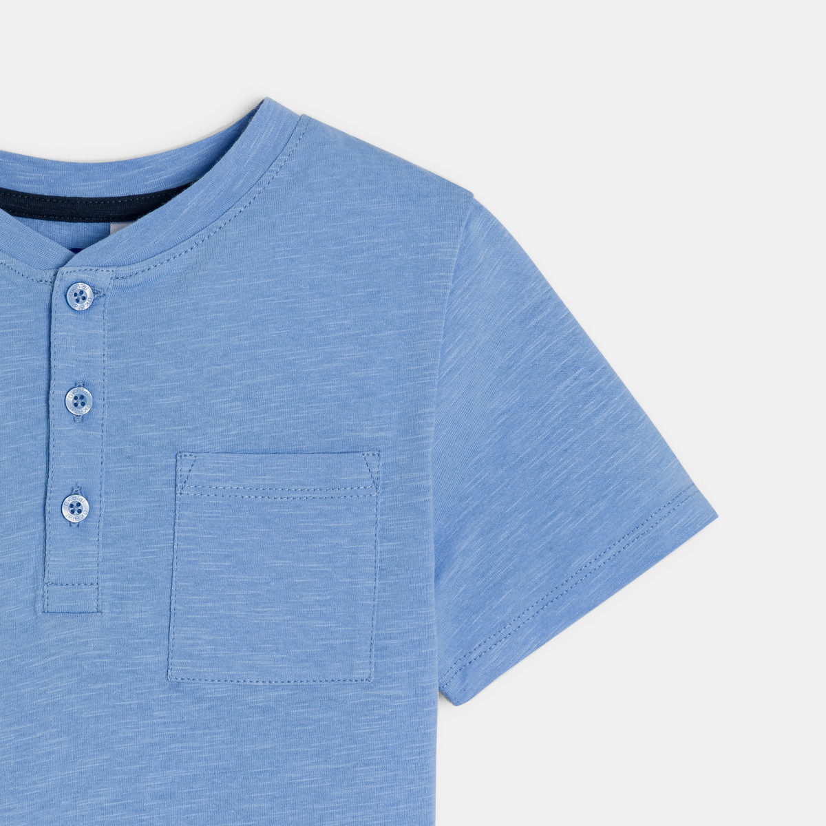 A beautiful palette of seasonal colours for this short-sleeve T-shirt with buttoned Henley neck. A wardrobe essential for boys this summer, in soft, light flamed fabric.