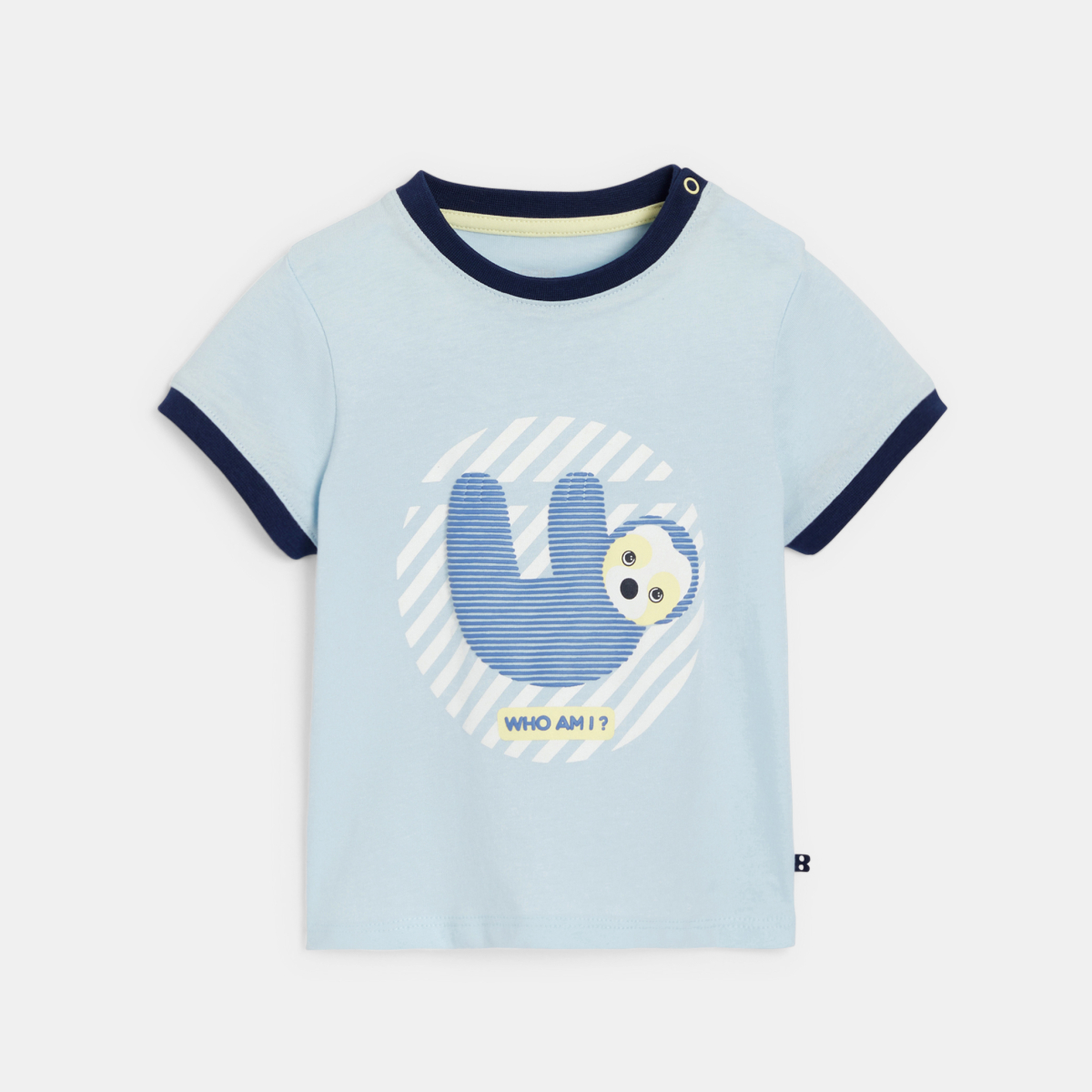 Descriptive To keep little ones amused, this fun T-shirt features a sloth that's soft under the fingers, to develop their sense of touch. A straight design with short sleeves and press-studs on the shoulder for easy dressing.