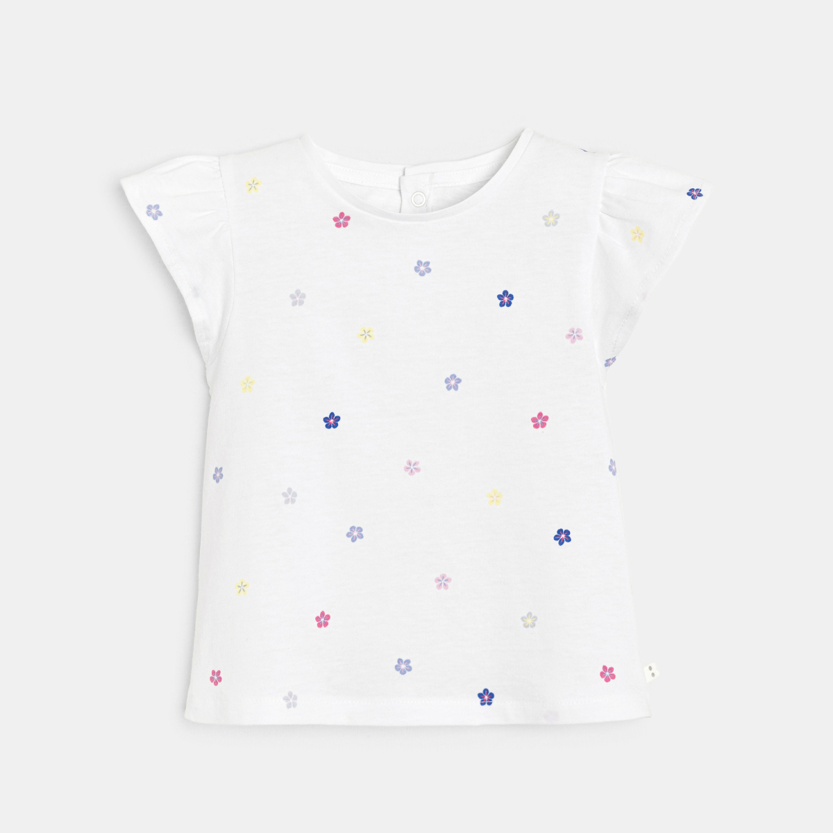Little girls will love this T-shirt showing things they can find in the garden. Elegant ruffled short sleeves. Fastens with three press-studs to slip easily over the head.