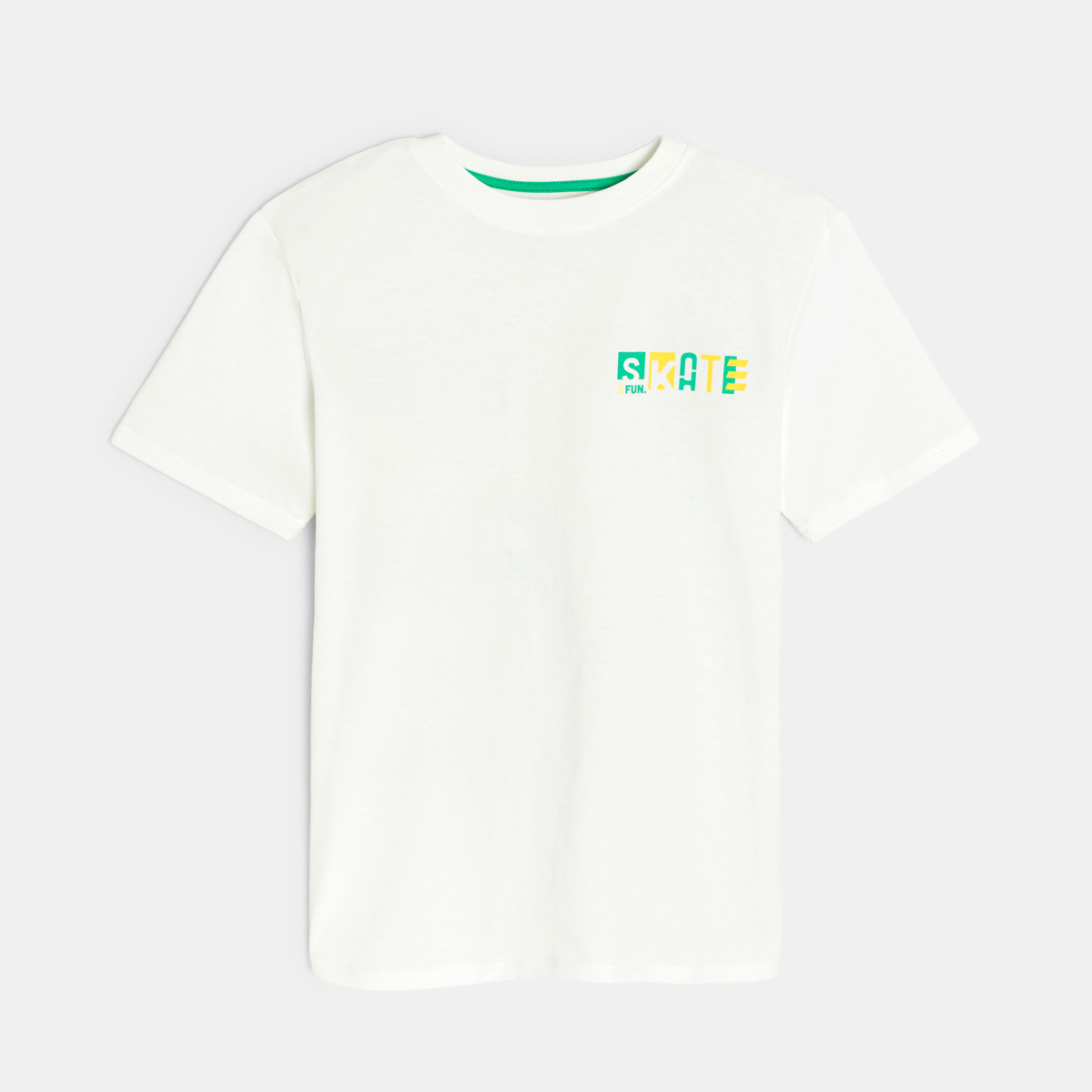 Sport and fun are the order of the day with this summer-ready T-shirt. Take a look at the graphic motifs on the chest and back. Soft jersey. Straight cut. Ribbed crew neck. Short sleeves. Straight hemline. Tone-on-tone stitching.