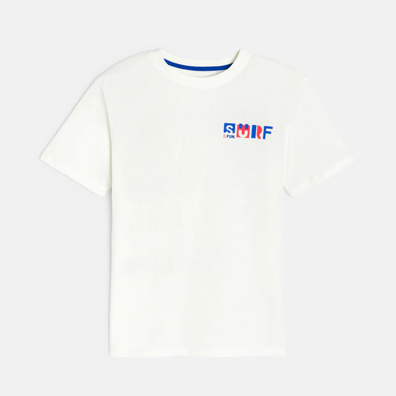 Descriptive Sport and fun are the order of the day with this summer-ready T-shirt. Take a look at the graphic motifs on the chest and back. Soft jersey. Straight cut. Ribbed crew neck. Short sleeves. Straight hemline. Tone-on-tone stitching.