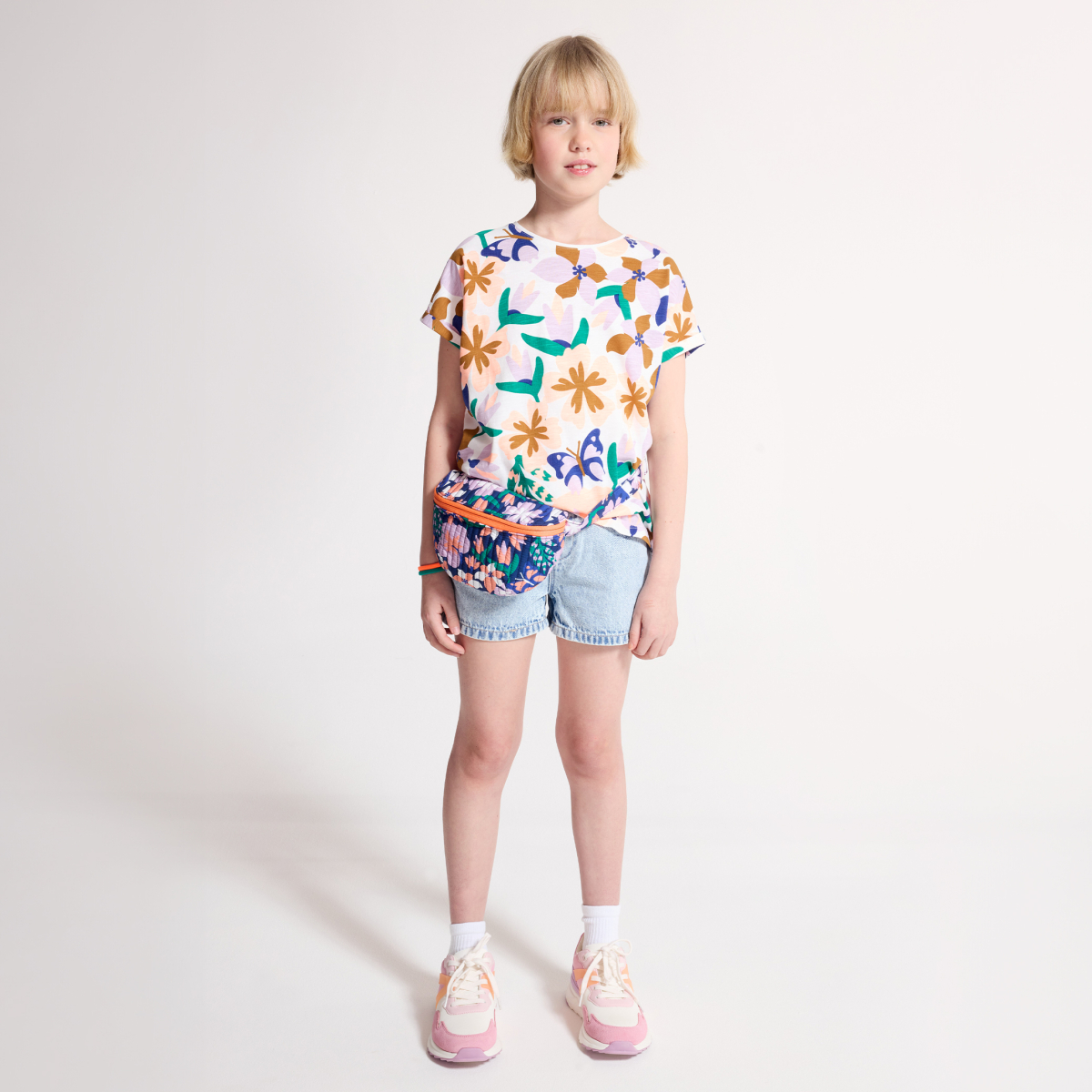 Girl's multicoloured, floral, short-sleeve T-shirt