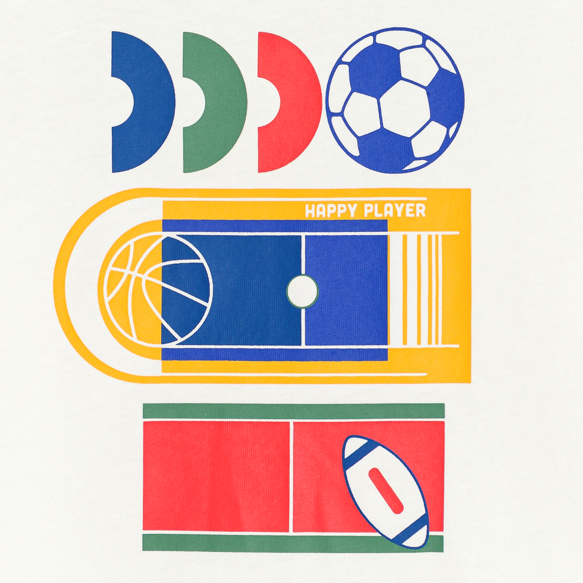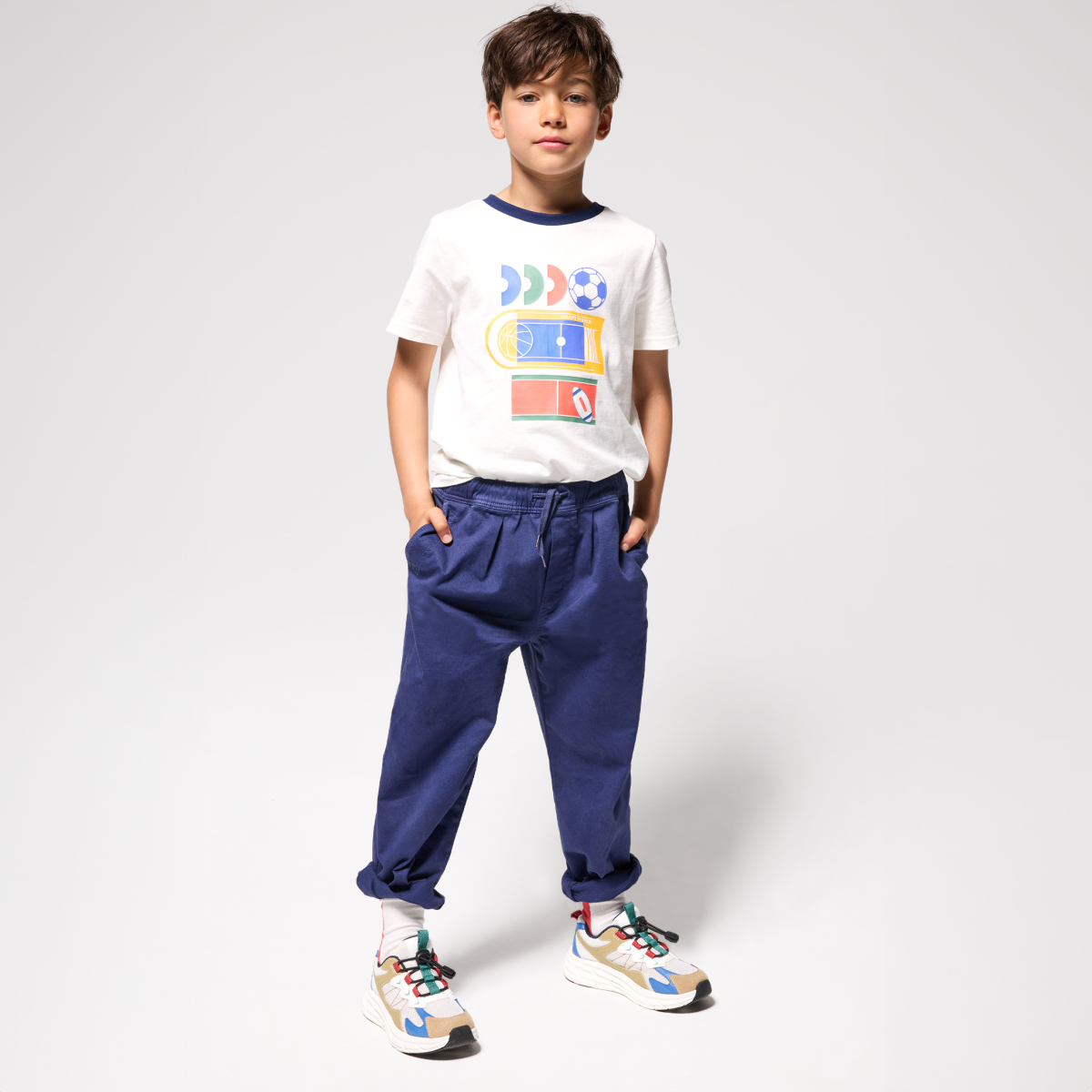 Colourful patterns are the secret to spicing up boys' looks this season! Soft cotton jersey. Straight cut. Contrasting crew neck. Printed motif on the front, plain back. Short sleeves. Straight hemline. Tone-on-tone stitching.