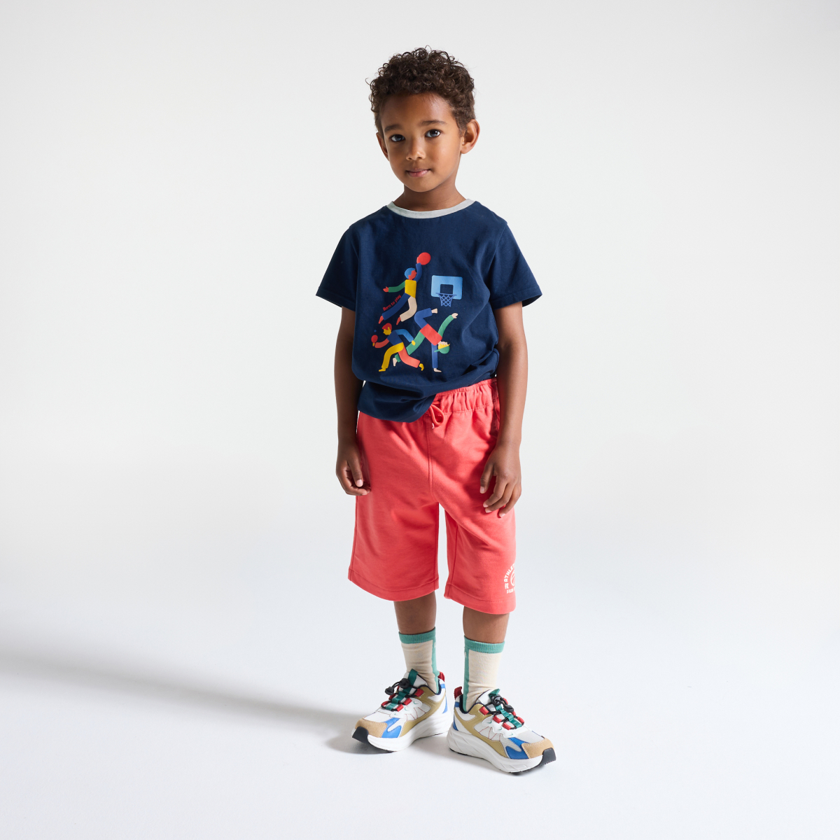 Colourful patterns are the secret to spicing up boys' looks this season! Soft cotton jersey. Straight cut. Contrasting crew neck. Printed motif on the front plain back. Short sleeves. Straight hemline. Tone-on-tone stitching.
