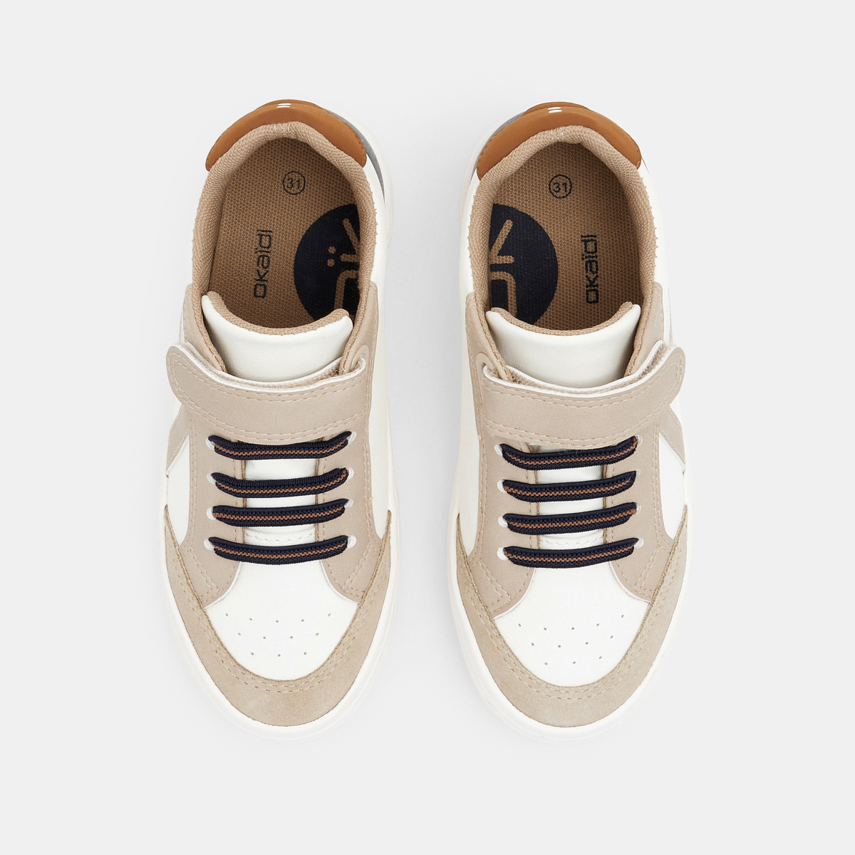 Descriptive These low-top trainers play with inserts and materials adding a streetwear touch to any outfit. We love the split leather reinforcement that protects boys' feet. Easy to put on with elasticated laces and Velcro fastening.