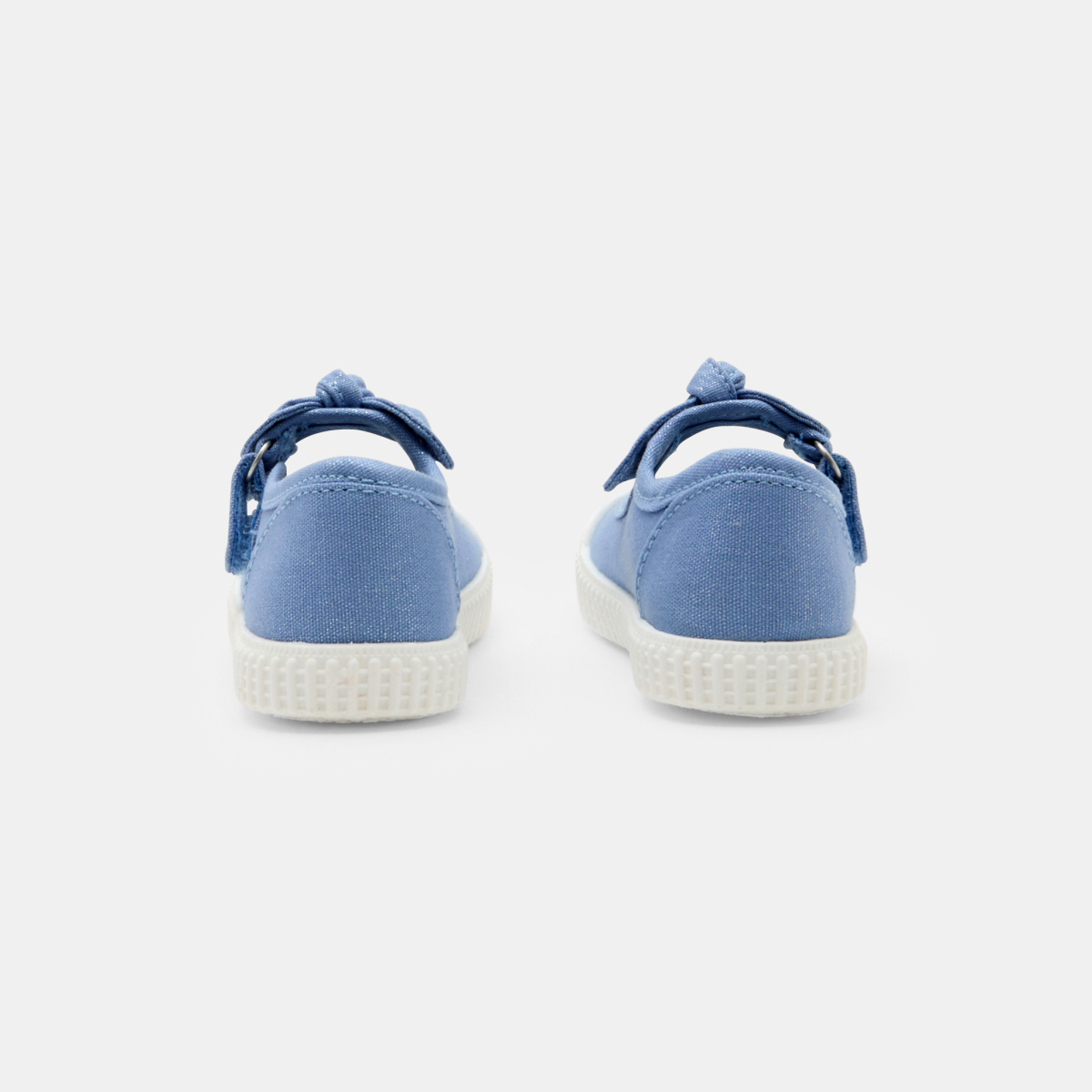 A sporty chic design for these little girls' ballet pumps. In canvas to match her outfits with a large Velcro bow these shoes are both pretty and practical.