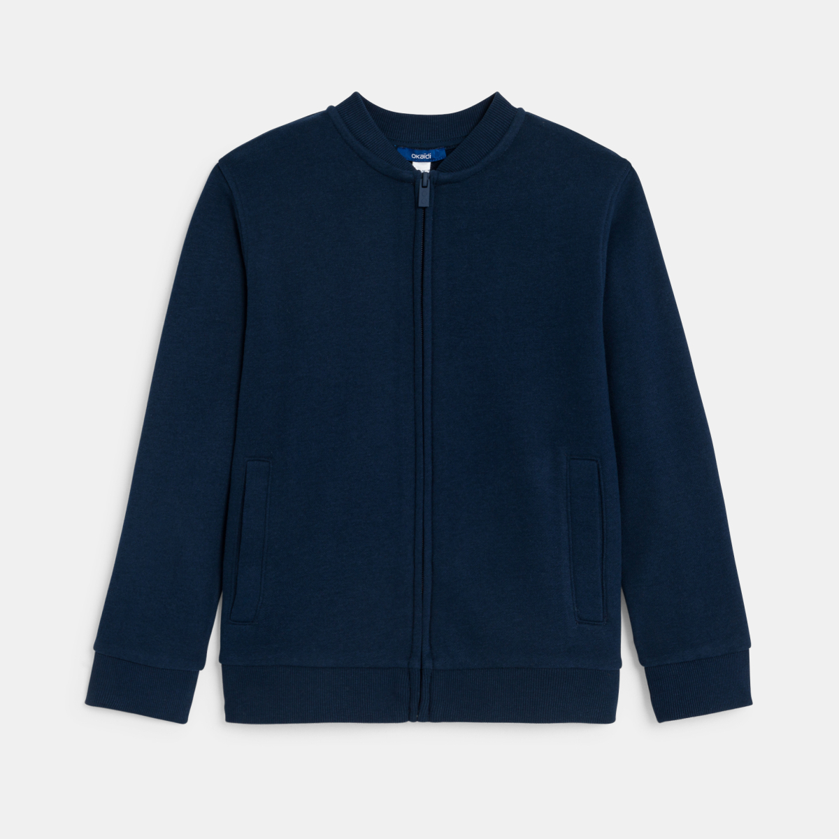 Always have a plain zip-up sweatshirt to hand! Whether you're heading off to school warming up a T-shirt or staying cool for a party! Soft fleece terry inside. Baseball style. Ribbed crew neck. Zip fastening. 2 front pockets. Long sleeves. Straight hemline. Ribbed edges.