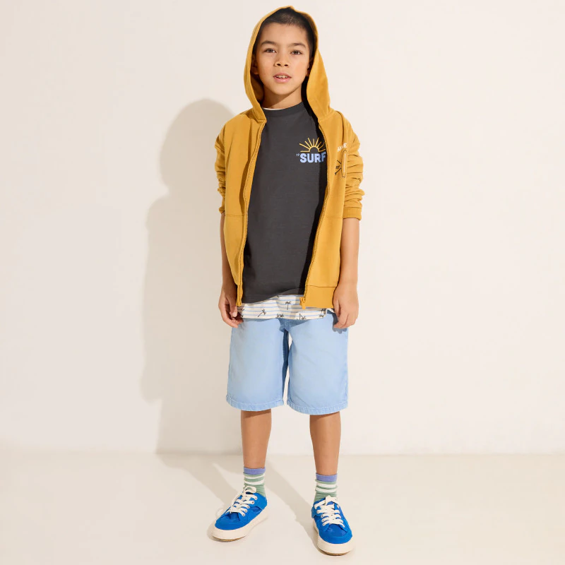 This hooded sweatshirt features a small design on the chest and a large design printed on the back, making it twice as popular and twice as eye-catching! Soft fleece, terry inside. Hood lined in tone-on-tone jersey. Zip fastening. Long sleeves. 2 pouch pockets. Straight hemline. Ribbed edges.
