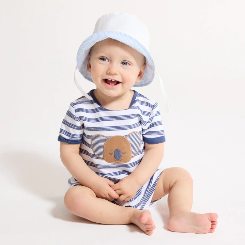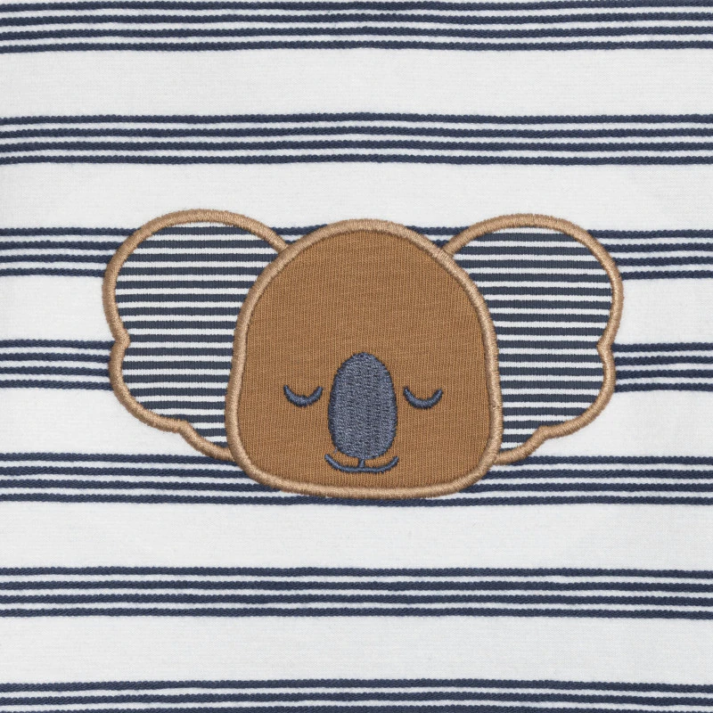 L'ami koala veille sur les petits ! Dans cette combinaison rayée les garçons sont entourés de confort et de douceur. Une forme manches et jambes courtes avec pressions au dos pour un habillage facile.