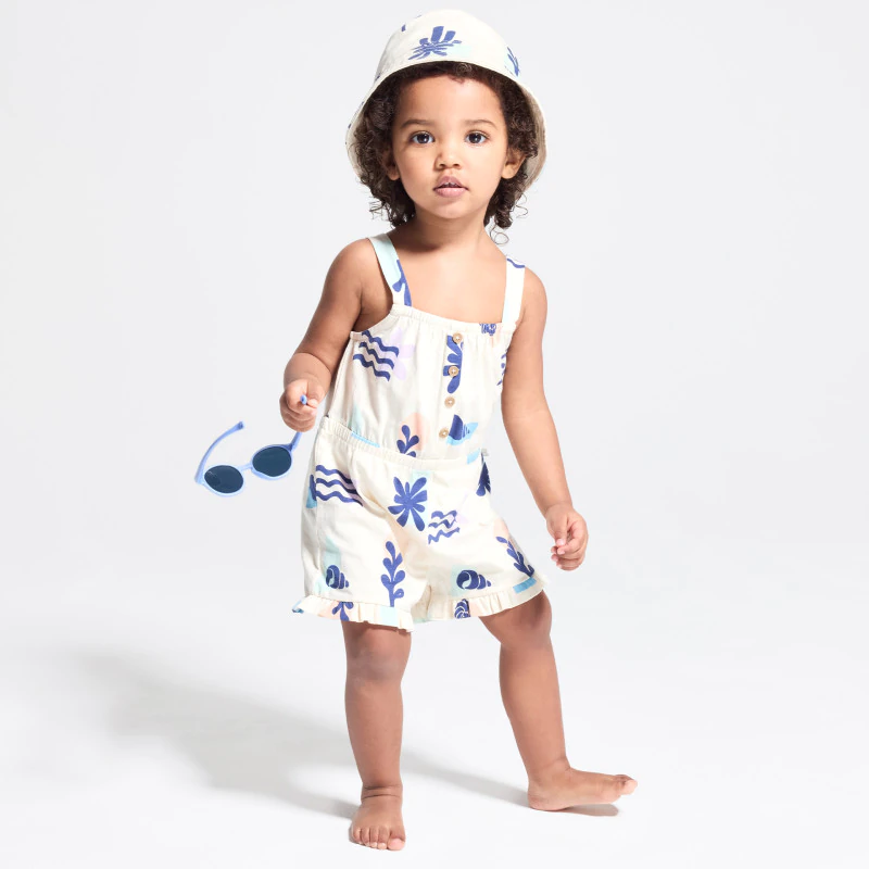 Description Avec son imprimé marin cette combinaison est la star du dressing des filles dès les beaux jours ! Un jersey de coton confortable une coupe pratique et des détails qui ont tout bon : on adore les bretelles et les volants aux cuisses. Taille et encolure élastiquées pressions à l'entrejambe pour habiller facilement les petites.