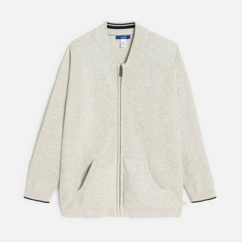 Description Les codes du blouson teddy s'invite sur ce long gilet zippé : ça change et ça donne belle allure aux garçons. Maille douce et souple point mousse et point jersey mélangés. Coupe légèrement resserrée à la base. Col rond côtelé. Ouverture zippée. Manches longues. 2 poches façon kangourou. Bords-côtes.n