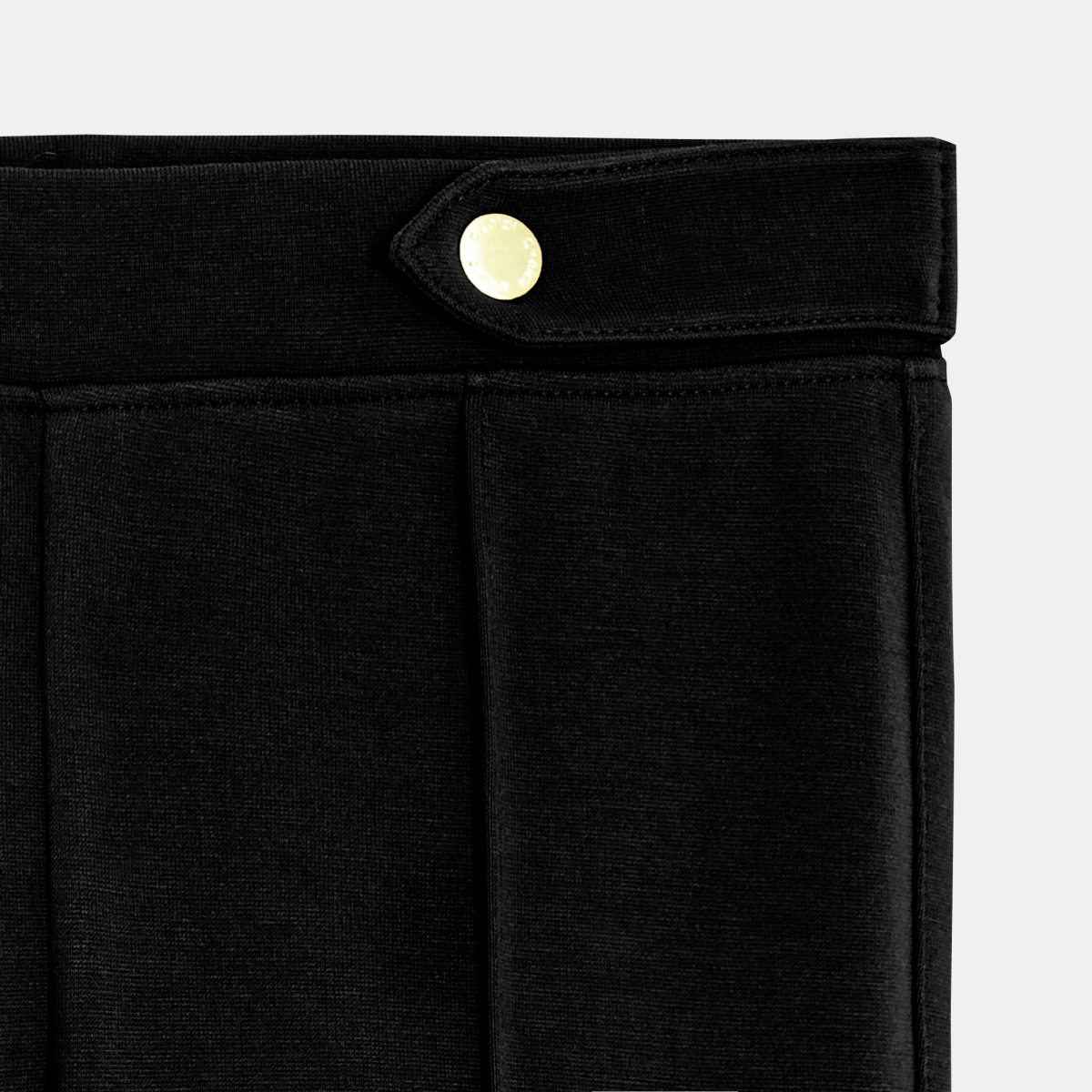 C'est nouveau : le jegging hausse son chic avec des plis marqués devant et des pressions dorées à la taille. Jambes fuselées coupe skinny. Taille élastiquée tour de taille ajustable. Coutures ton sur ton.