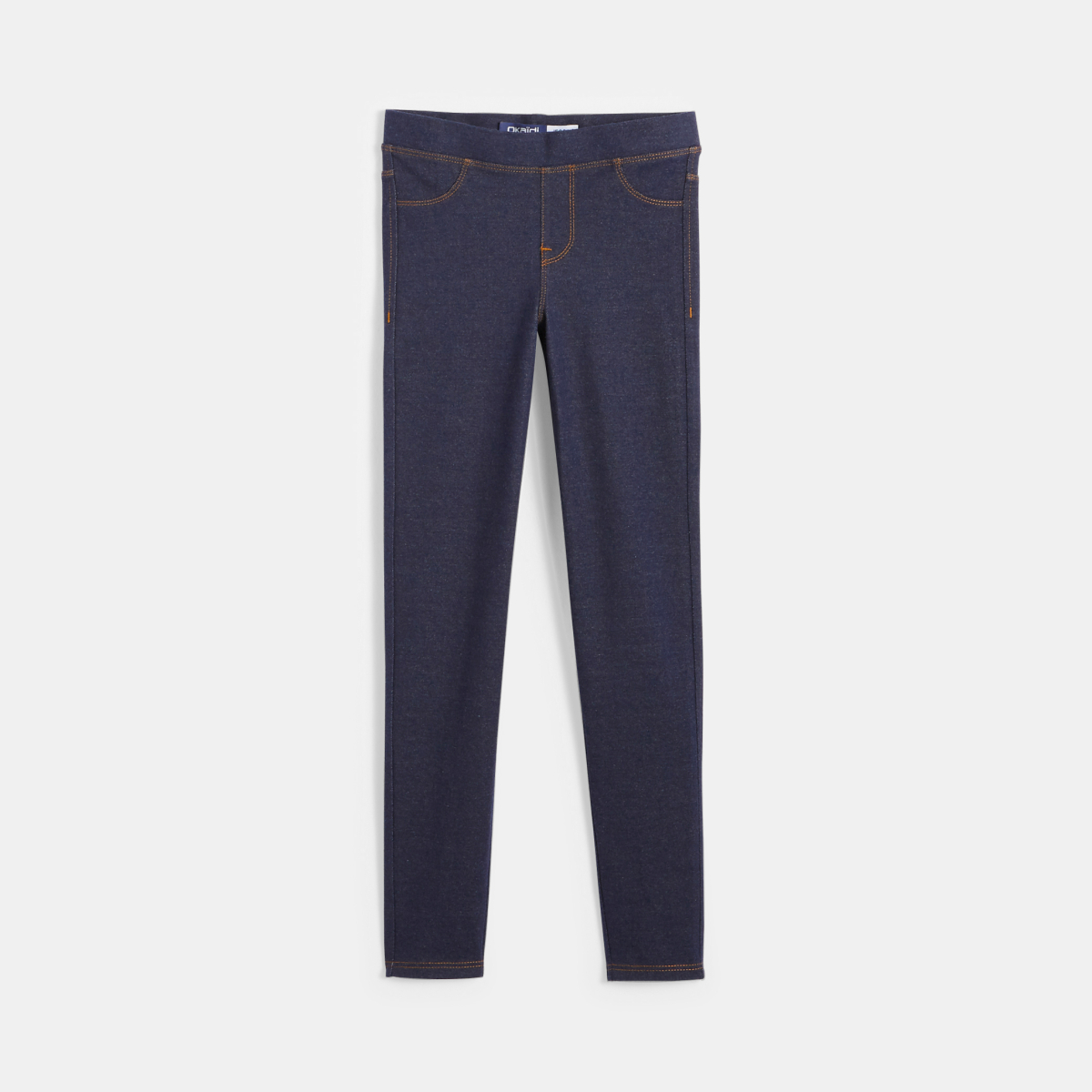 Description Pantalon fille / Caleçon / Jegging. Jersey doux et épais effet jean très extensible. Coupe fuselée. Taille plate entièrement élastiquée. 2 vraies poches dos. Finition surpiquée contrastée.
