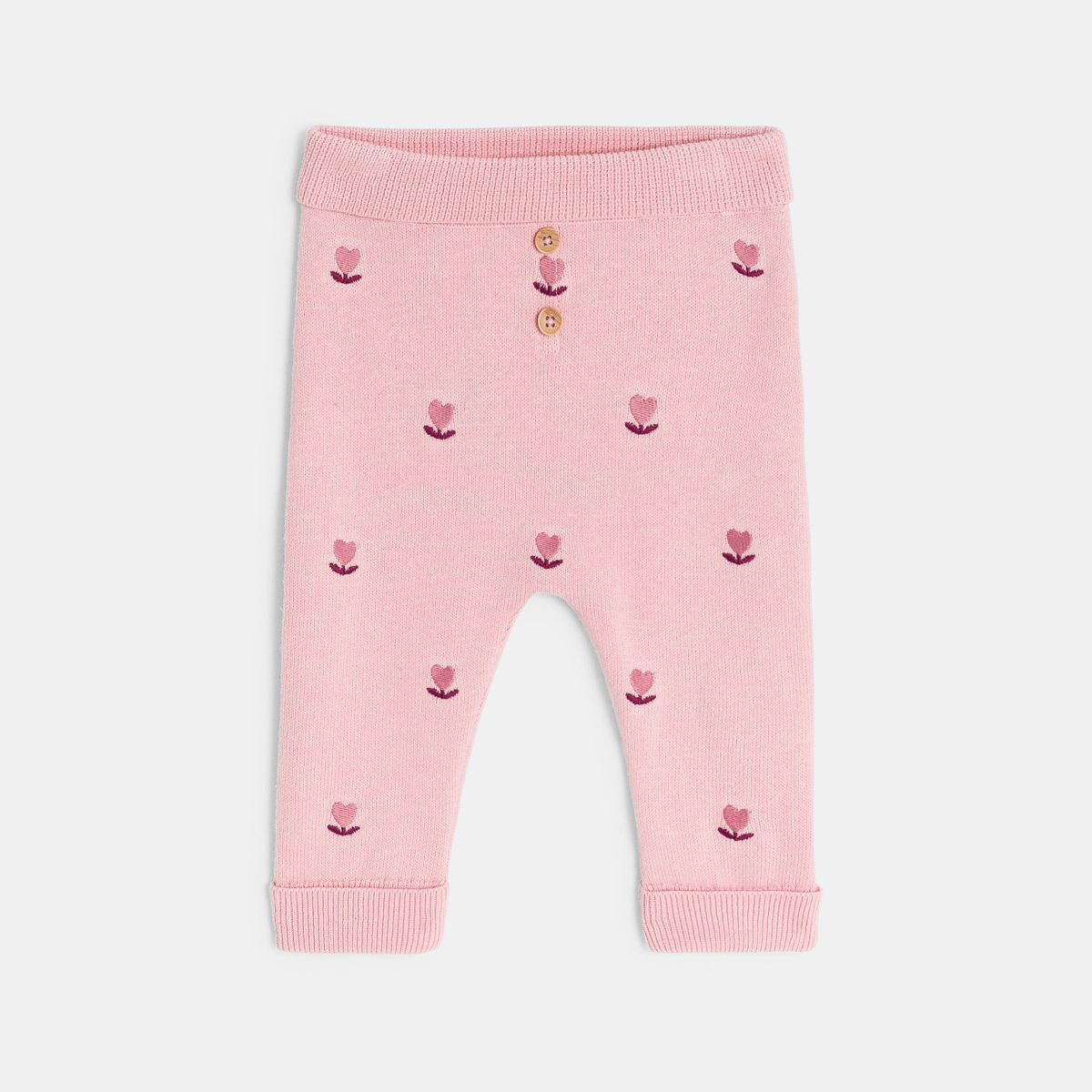 Pull et pantalon maille tricot fleurs rose bébé naissance fille