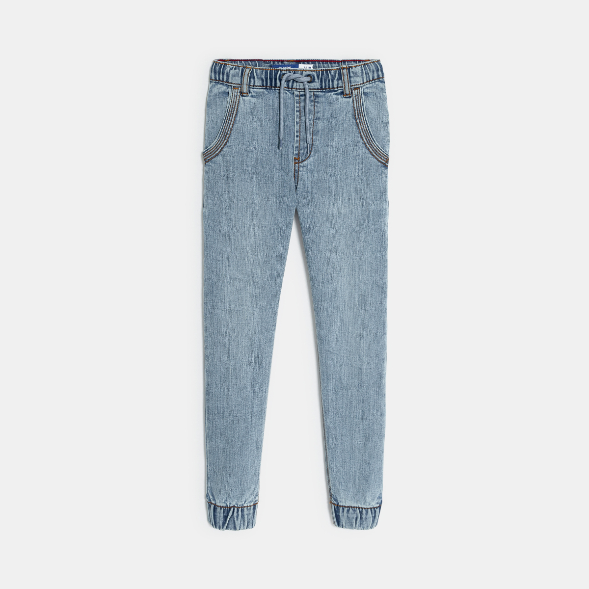 Description Avis de changement pour le jean slim des garçons : ici il est élastiqué à la taille et sur les bas de jambes. Denim ultra-résistant confort et délavé. Taille élastiquée ajustable cordon à nouer œillets métal. Coutures contrastées.