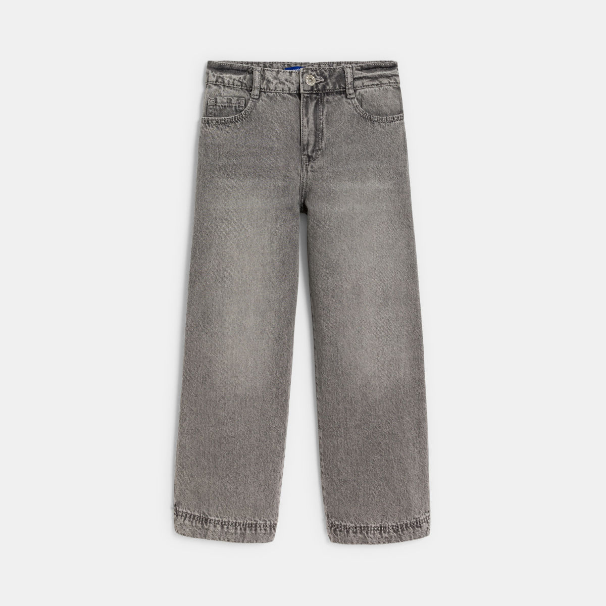 Description Le jean gris délavé va avec tout. La coupe wide est pile dans lu2019air du temps Deux bonnes raisons pour adorer ce pantalon fille ! Denim doux et légèrement extensible. Passants. Ouverture par bouton clou et zip. Tour de taille ajustable. 5 poches. Coutures ton sur ton.