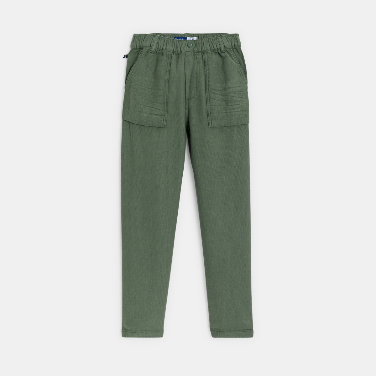 Les garçons veulent du cool, et du style ! Mission accomplie avec ce pantalon relax, à taille entièrement élastiquée et ajustable. Toile agréable à porter. En détail : des plis froissés. 2 poches plaquées. Bouton ton sur ton en décoration.