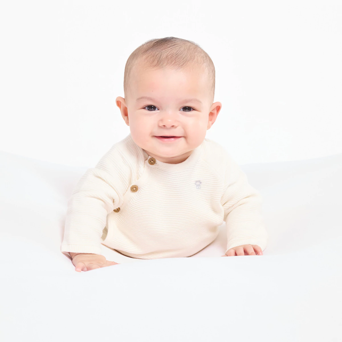 Pour entourer de chaleur et de douceur les petits cette brassière boutonnée s'enfile facilement car elle permet un habillage sur le dos. Maille tricot chaleureuse sur la peau des enfants.