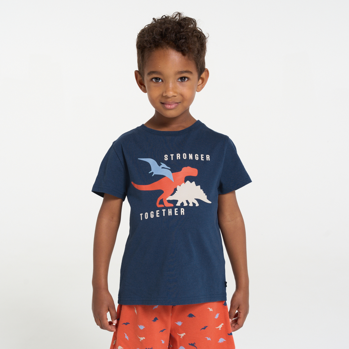 Description Quand on est fan de dinosaures, on l'est jusqu'au bout de ses rêves aussi ! Ce pyjama en jersey est composé de deux pièces : un t-shirt avec motif placé devant (coupe droite, col rond et manches courtes) et un short imprimé (taille élastiquée).