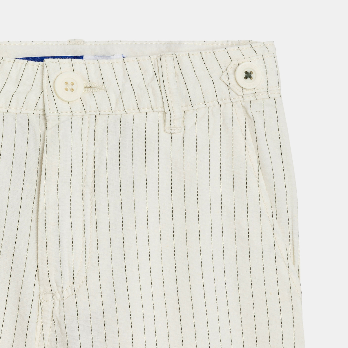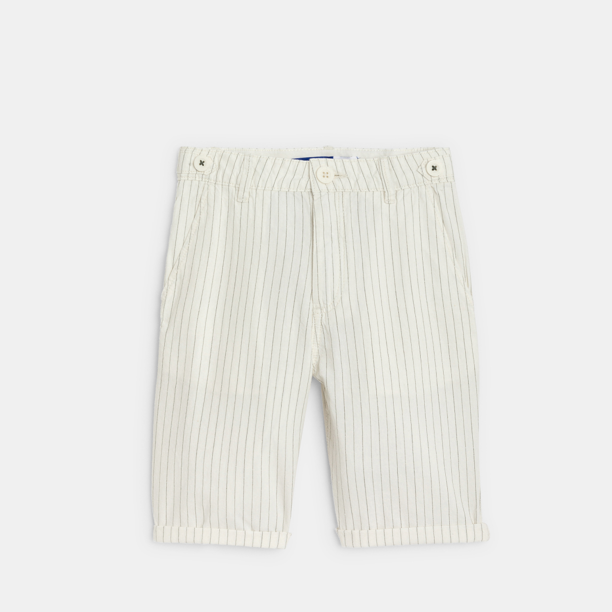 Estival. Chic. Décontracté. Ce bermuda peut passer d'un look à l'autre tout en restant très confort ! Les garçons aiment les fines rayures banquier verticales ton sur ton. Tour de taille ajustable. Ouverture par bouton et zip. Pattes boutonnées à la taille. Passants. 2 poches.