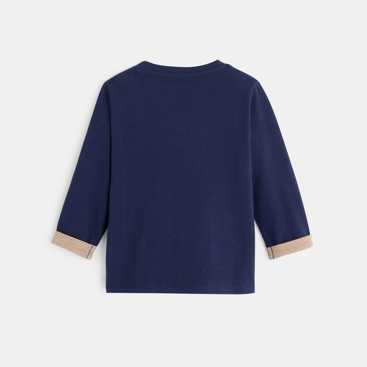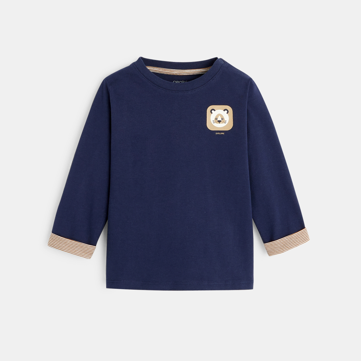 Une frimousse sur le coeur côté tendre. Des poignets rayés côté sportswear. Le tee-shirt manches longues des garçons leur ressemble ! Encolure ronde boutonnée pratique pour passer la tête.