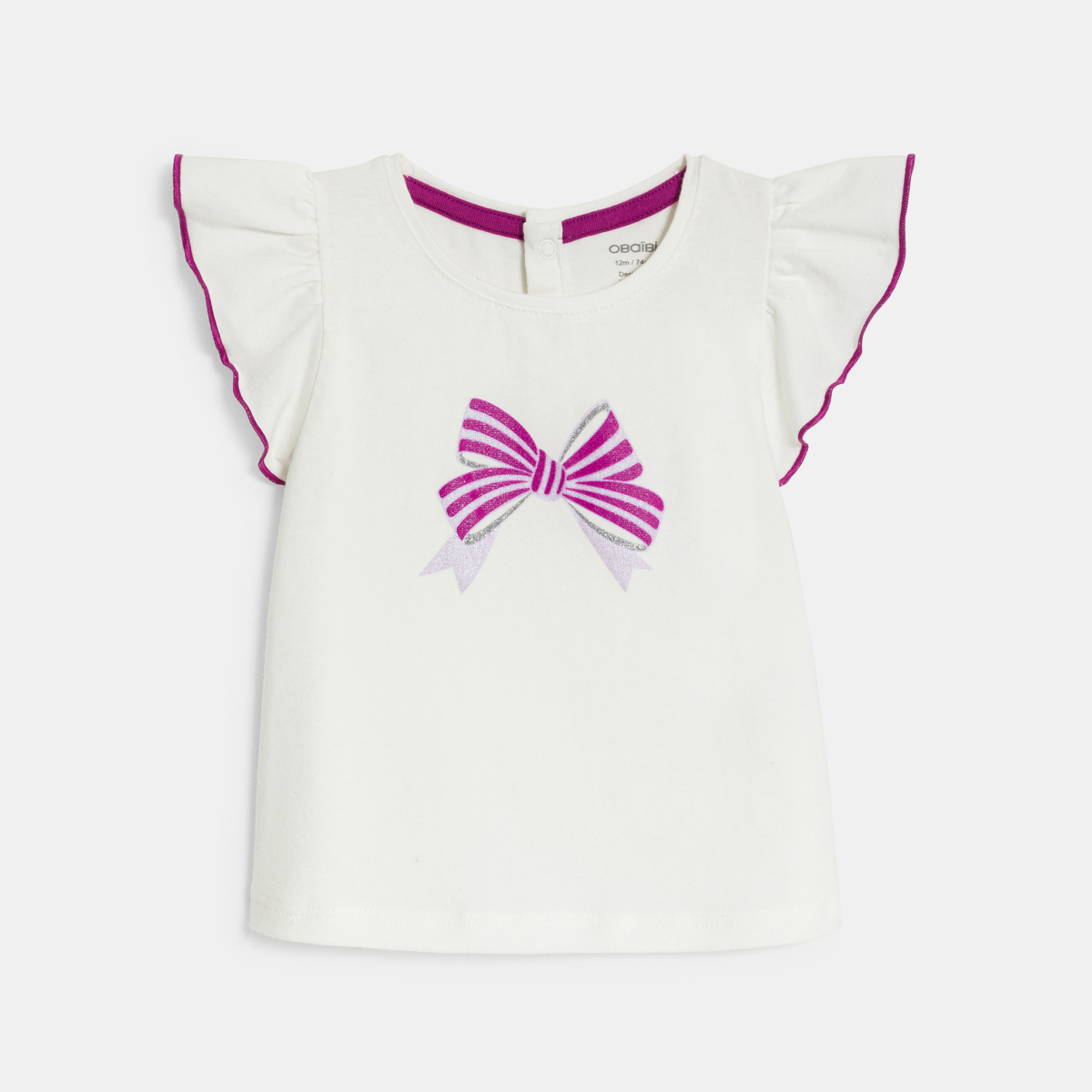 T-shirt manches courtes volantées noeud blanc bébé fille