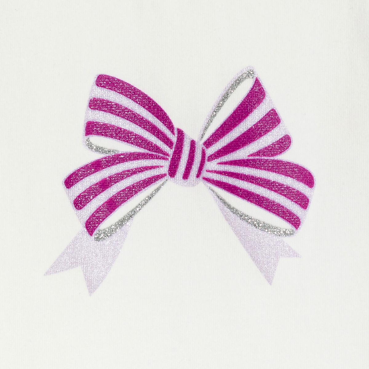 Description Les filles adorent les détails de ce tee-shirt : des manches courtes volantées et un nœud brillant imprimé sur le devant. Pressions dos pour habiller facilement les petites.