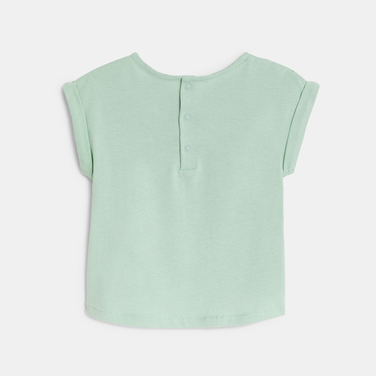 T-shirt bi-matière broderie anglaise vert bébé fille