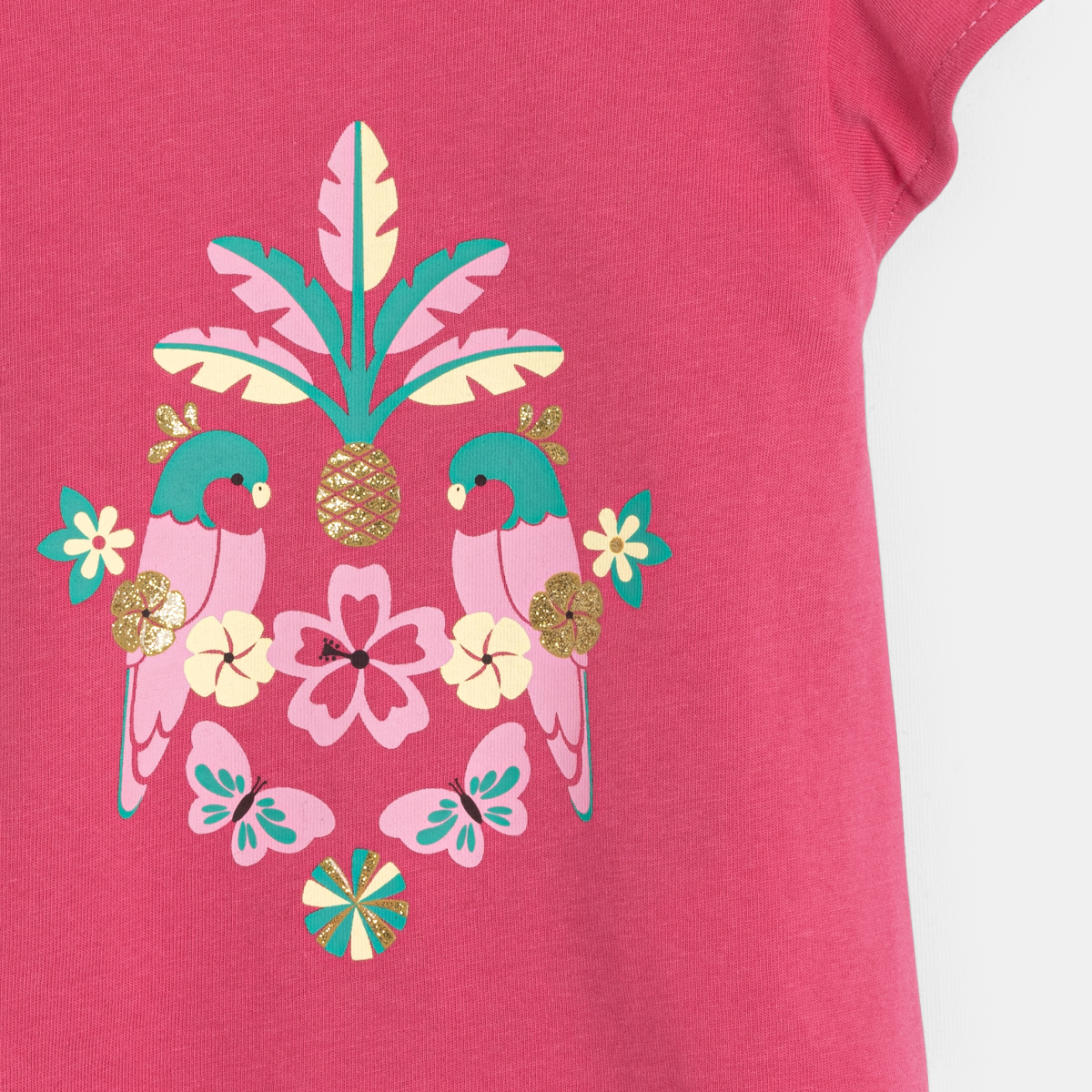 Ces oiseaux s'illustrent dans un décor tropique… Les petites aiment ce tee-shirt. Petites manches volantées élégantes et ouverture par trois pressions pour un passage de tête facile.
