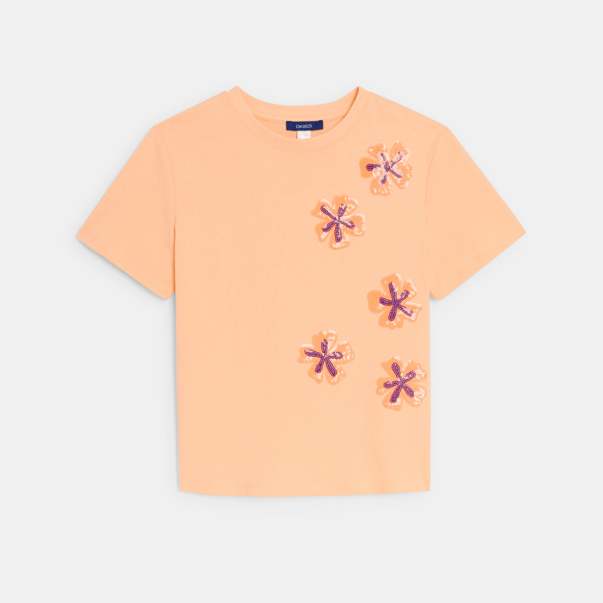 Une envolée de fleurs en sequins brodés colorent ce t-shirt : ça fait plein d'effet et ça enchante les journées ! Jersey doux. Coupe droite. Encolure arrondie. Manches courtes. Base droite. Coutures ton sur ton.