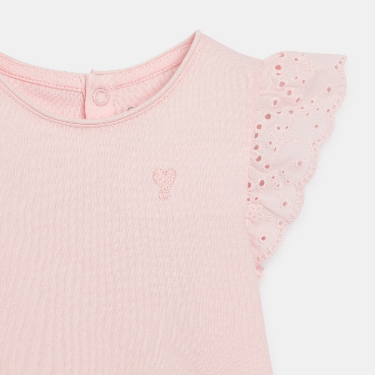 Description L'élégance subtile de la broderie anglaise habille les manches courtes de ce tee-shirt en jersey de coton. Pour un évènement ou un quotidien chic les filles adorent ce petit côté rétro. Pressions dos pour un passage de tête facilité.